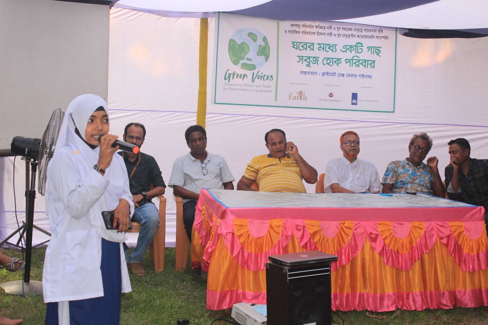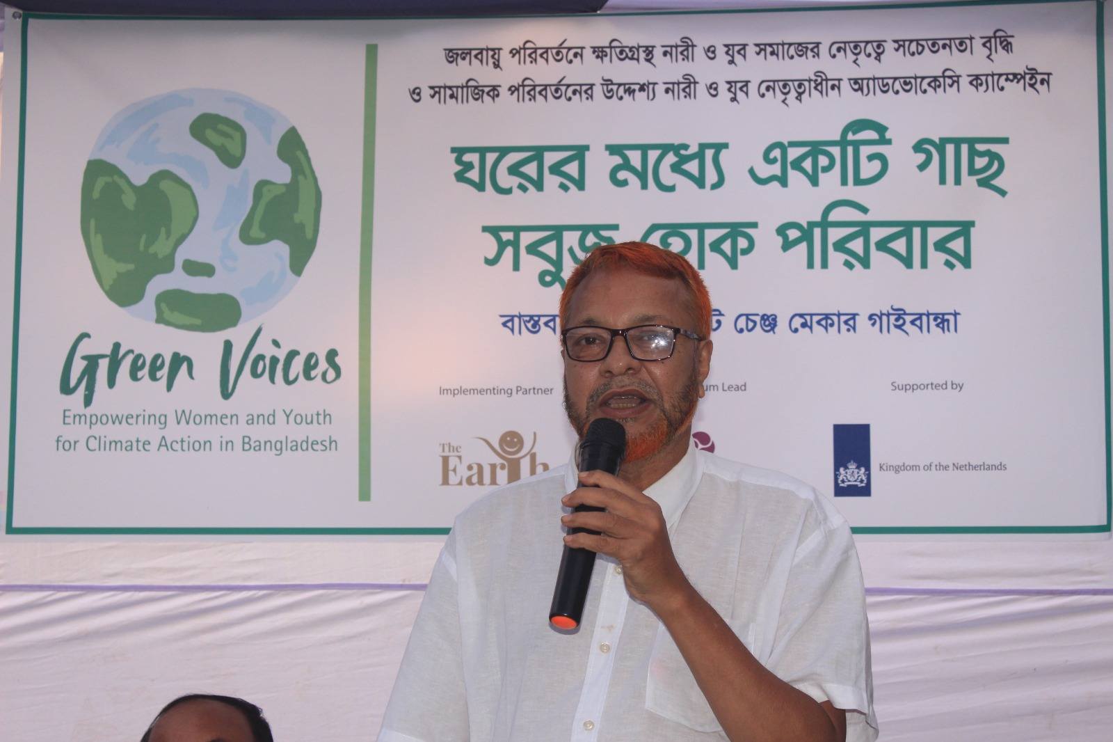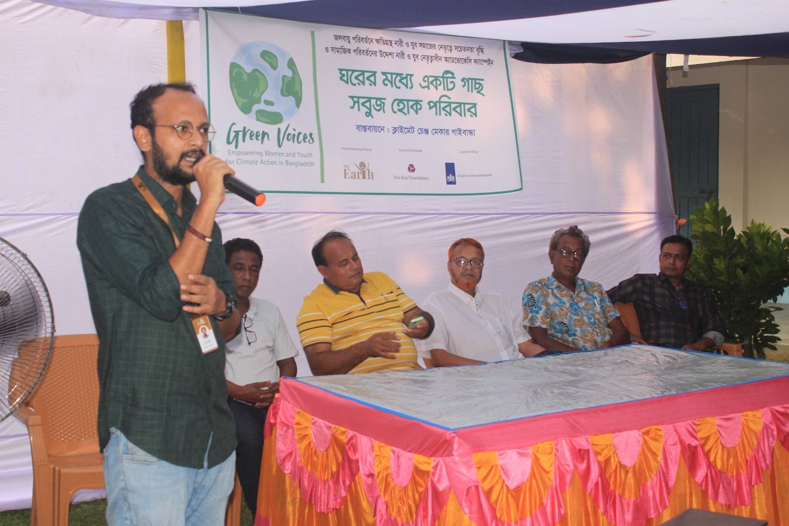 আজ ২৭ অক্টোবর ২০২৫, গ্রিন ভয়েসেস প্রজেক্টের আওতায় গাইবান্ধার সাঘাটা উপজেলার #উদয়ন স্বাবলম্বী সংস্থার প্রাঙ্গণে অনুষ্ঠিত হলো কমিউনিটি-ভিত্তিক যুবনেতৃত্বাধীন এডভোকেসি ক্যাম্পেইন "ঘরের মধ্যে একটি গাছ,সবুজ হোক পরিবার”। পরিবেশ ও জলবায়ু পরিবর্তন নিয়ে কমিউনিটিকে সচেতন করতে ক্যাম্পেইনটি পরিচালনা করেছে যুব সংগঠন Climate Change Maker Gaibandha। এই উদ্যোগটি ছিল #TheEarth কর্তৃক আয়োজিত Gender, Climate Advocacy and Leadership Training-এর পরবর্তী ধাপ। ক্যাম্পেইনে উপস্থিত ছিলেন নারী, স্বেচ্ছাসেবক, শিক্ষার্থী, ৪ নং মুক্তিনগর ইউনিয়ন পরিষদ চেয়ারম্যান এবং মেম্বার, গণ্যমান্য ব্যক্তি, শিক্ষক, সাংবাদিক, এবং The Earth এর প্রতিনিধিগন। এই ক্যাম্পেইনের পর ইউনিয়ন পরিষদের চেয়ারম্যান যুব সংগঠনটির সদস্যদের নিয়ে ইউনিয়ন পরিষদে পরিবেশ নিয়ে কাজ করার জন্য একটি যুব কমিটি গঠনের আশ্বাস ব্যক্ত করেন যেই কমিটি পরিবেশের পরিবর্তন নিয়ে ইউনিয়ন পরিষদের সাথে এক হয়ে কাজ করবে।