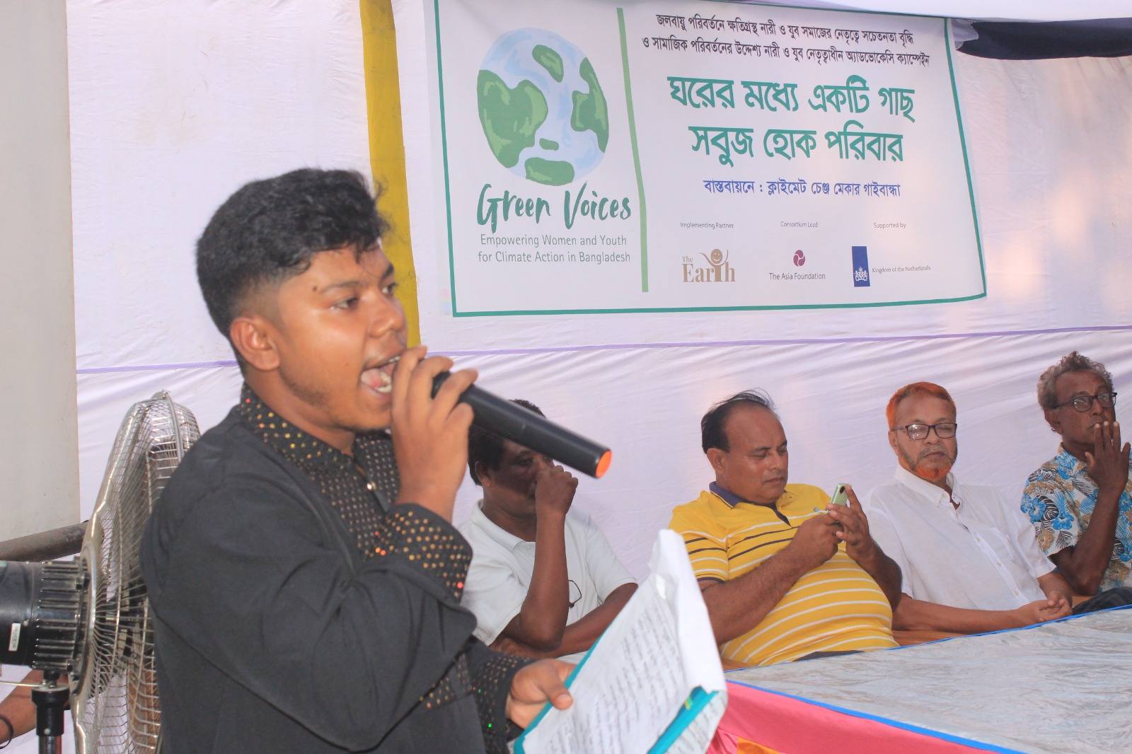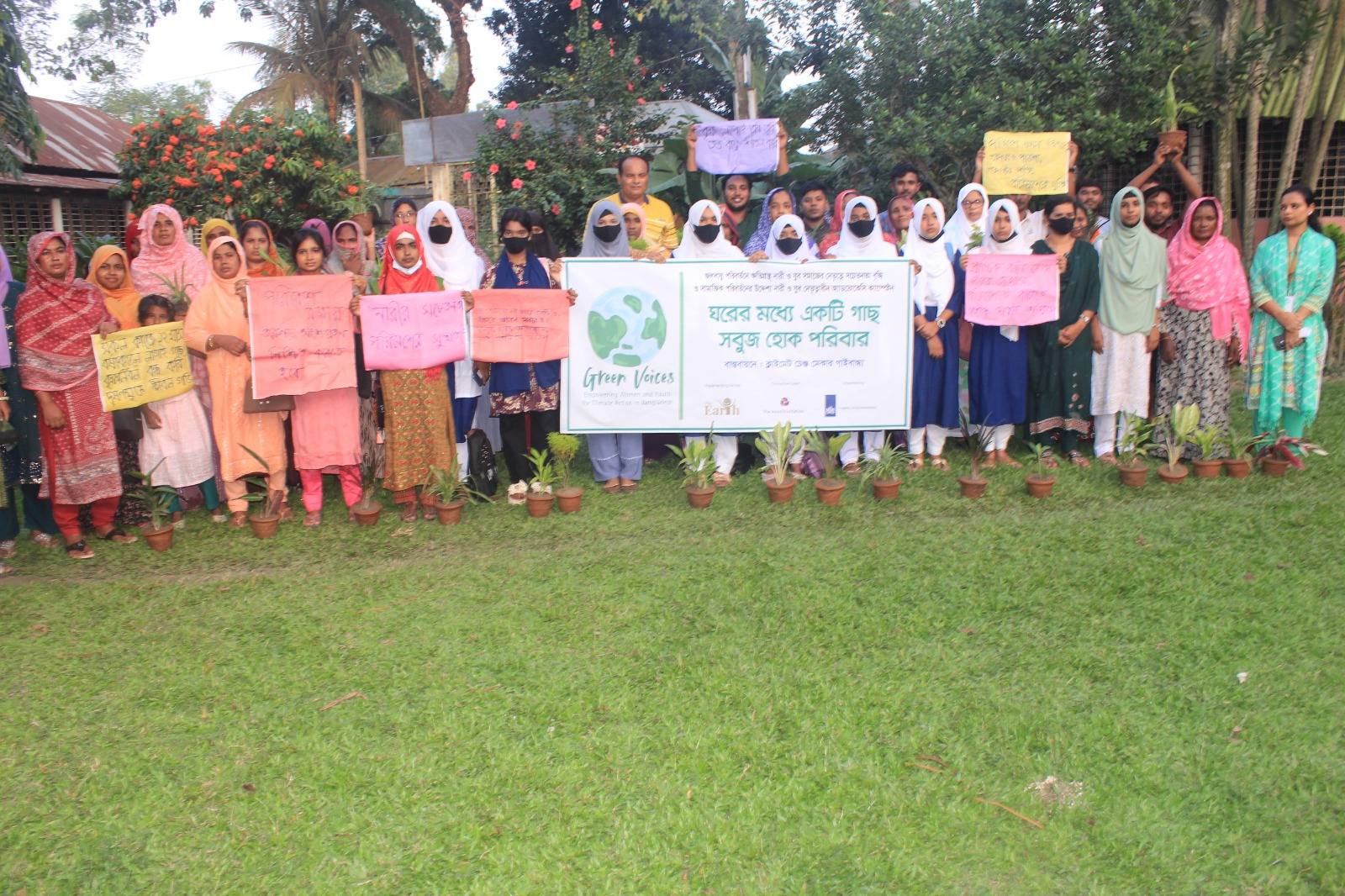 আজ ২৭ অক্টোবর ২০২৫, গ্রিন ভয়েসেস প্রজেক্টের আওতায় গাইবান্ধার সাঘাটা উপজেলার #উদয়ন স্বাবলম্বী সংস্থার প্রাঙ্গণে অনুষ্ঠিত হলো কমিউনিটি-ভিত্তিক যুবনেতৃত্বাধীন এডভোকেসি ক্যাম্পেইন "ঘরের মধ্যে একটি গাছ,সবুজ হোক পরিবার”। পরিবেশ ও জলবায়ু পরিবর্তন নিয়ে কমিউনিটিকে সচেতন করতে ক্যাম্পেইনটি পরিচালনা করেছে যুব সংগঠন Climate Change Maker Gaibandha। এই উদ্যোগটি ছিল #TheEarth কর্তৃক আয়োজিত Gender, Climate Advocacy and Leadership Training-এর পরবর্তী ধাপ। ক্যাম্পেইনে উপস্থিত ছিলেন নারী, স্বেচ্ছাসেবক, শিক্ষার্থী, ৪ নং মুক্তিনগর ইউনিয়ন পরিষদ চেয়ারম্যান এবং মেম্বার, গণ্যমান্য ব্যক্তি, শিক্ষক, সাংবাদিক, এবং The Earth এর প্রতিনিধিগন। এই ক্যাম্পেইনের পর ইউনিয়ন পরিষদের চেয়ারম্যান যুব সংগঠনটির সদস্যদের নিয়ে ইউনিয়ন পরিষদে পরিবেশ নিয়ে কাজ করার জন্য একটি যুব কমিটি গঠনের আশ্বাস ব্যক্ত করেন যেই কমিটি পরিবেশের পরিবর্তন নিয়ে ইউনিয়ন পরিষদের সাথে এক হয়ে কাজ করবে।